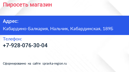 Пиросеть, магазин по адресу Кабардино-Балкария, Нальчик, Кабардинская, 189Б в дальнейшем Организация, размещена в следующих категориях: