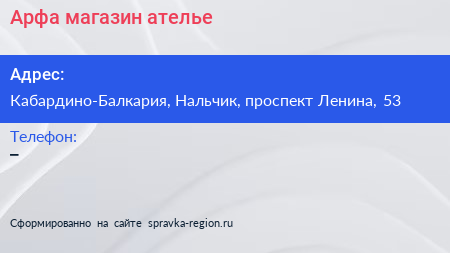 Арфа, магазин-ателье по адресу Кабардино-Балкария, Нальчик, проспект Ленина, 53 в дальнейшем Организация, размещена в следующих категориях: