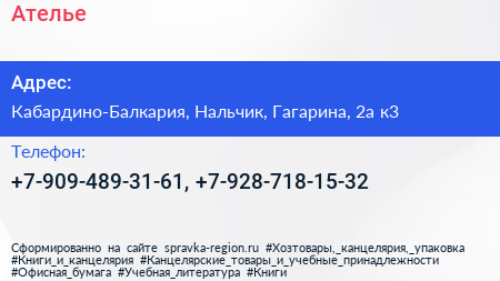 Ателье по адресу Кабардино-Балкария, Нальчик, Гагарина, 2а к3 в дальнейшем Организация, размещена в следующих категориях: