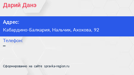 Дарий-Данэ по адресу Кабардино-Балкария, Нальчик, Ахохова, 92 в дальнейшем Организация, размещена в следующих категориях: