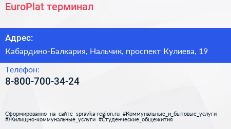 EuroPlat, терминал по адресу Кабардино-Балкария, Нальчик, проспект Кулиева, 19 в дальнейшем Организация, размещена в следующих категориях: