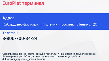 EuroPlat, терминал по адресу Кабардино-Балкария, Нальчик, проспект Ленина, 20 в дальнейшем Организация, размещена в следующих категориях: