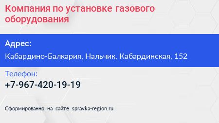 Компания по установке газового оборудования по адресу Кабардино-Балкария, Нальчик, Кабардинская, 152 в дальнейшем Организация, размещена в следующих категориях: