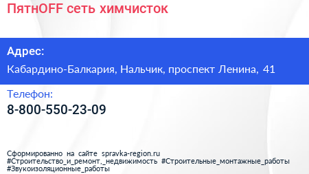 ПятнOFF, сеть химчисток по адресу Кабардино-Балкария, Нальчик, проспект Ленина, 41 в дальнейшем Организация, размещена в следующих категориях: