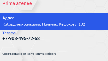 Primа, ателье по адресу Кабардино-Балкария, Нальчик, Кешокова, 102 в дальнейшем Организация, размещена в следующих категориях: