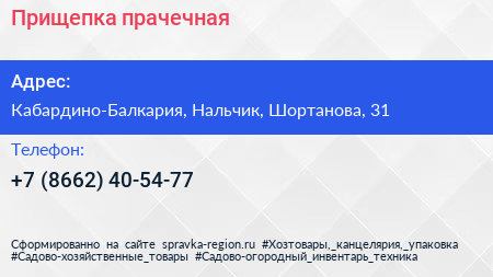 Прищепка, прачечная по адресу Кабардино-Балкария, Нальчик, Шортанова, 31 в дальнейшем Организация, размещена в следующих категориях: