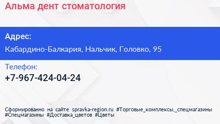 Альма дент, стоматология по адресу Кабардино-Балкария, Нальчик, Головко, 95 в дальнейшем Организация, размещена в следующих категориях: