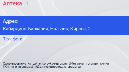 Аптека +1 по адресу Кабардино-Балкария, Нальчик, Кирова, 2 в дальнейшем Организация, размещена в следующих категориях: