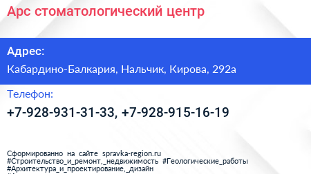 Арс, стоматологический центр по адресу Кабардино-Балкария, Нальчик, Кирова, 292а в дальнейшем Организация, размещена в следующих категориях: