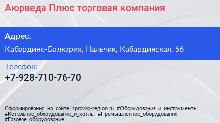 Аюрведа-Плюс, торговая компания по адресу Кабардино-Балкария, Нальчик, Кабардинская, 66 в дальнейшем Организация, размещена в следующих категориях: