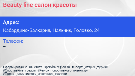Beauty line, салон красоты по адресу Кабардино-Балкария, Нальчик, Головко, 24 в дальнейшем Организация, размещена в следующих категориях:
