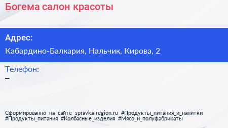 Богема, салон красоты по адресу Кабардино-Балкария, Нальчик, Кирова, 2 в дальнейшем Организация, размещена в следующих категориях: