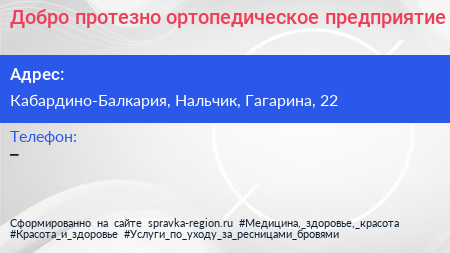 Добро, протезно-ортопедическое предприятие по адресу Кабардино-Балкария, Нальчик, Гагарина, 22 в дальнейшем Организация, размещена в следующих категориях: