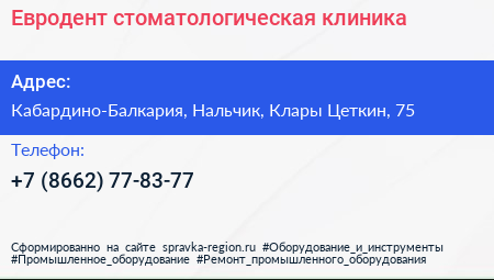 Евродент, стоматологическая клиника по адресу Кабардино-Балкария, Нальчик, Клары Цеткин, 75 в дальнейшем Организация, размещена в следующих категориях: