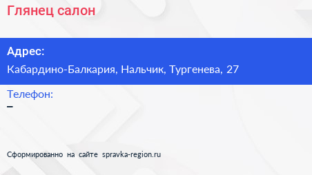 Глянец, салон по адресу Кабардино-Балкария, Нальчик, Тургенева, 27 в дальнейшем Организация, размещена в следующих категориях: