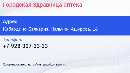 Городская Здравница, аптека по адресу Кабардино-Балкария, Нальчик, Ашурова, 16 в дальнейшем Организация, размещена в следующих категориях: