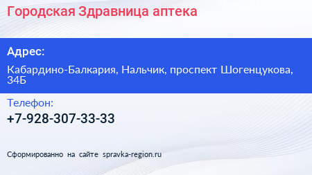 Городская Здравница, аптека по адресу Кабардино-Балкария, Нальчик, проспект Шогенцукова, 34Б в дальнейшем Организация, размещена в следующих категориях: