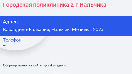 Городская поликлиника №2, г. Нальчика по адресу Кабардино-Балкария, Нальчик, Мечиева, 207а в дальнейшем Организация, размещена в следующих категориях: