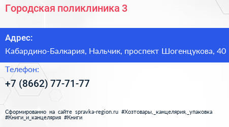 Городская поликлиника №3 по адресу Кабардино-Балкария, Нальчик, проспект Шогенцукова, 40 в дальнейшем Организация, размещена в следующих категориях: