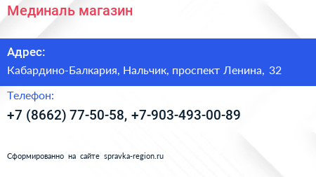 Мединаль, магазин по адресу Кабардино-Балкария, Нальчик, проспект Ленина, 32 в дальнейшем Организация, размещена в следующих категориях: