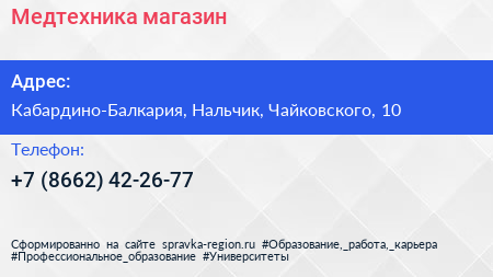 Медтехника, магазин по адресу Кабардино-Балкария, Нальчик, Чайковского, 10 в дальнейшем Организация, размещена в следующих категориях: