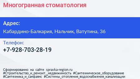 Многогранная, стоматология по адресу Кабардино-Балкария, Нальчик, Ватутина, 36 в дальнейшем Организация, размещена в следующих категориях: