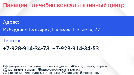 Панацея +, лечебно-консультативный центр по адресу Кабардино-Балкария, Нальчик, Ногмова, 77 в дальнейшем Организация, размещена в следующих категориях: