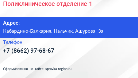 Поликлиническое отделение №1 по адресу Кабардино-Балкария, Нальчик, Ашурова, 3а в дальнейшем Организация, размещена в следующих категориях: