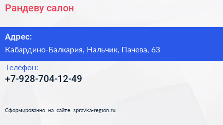 Рандеву, салон по адресу Кабардино-Балкария, Нальчик, Пачева, 63 в дальнейшем Организация, размещена в следующих категориях: