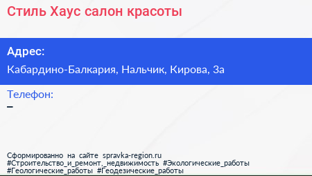 Стиль Хаус, салон красоты по адресу Кабардино-Балкария, Нальчик, Кирова, 3а в дальнейшем Организация, размещена в следующих категориях:
