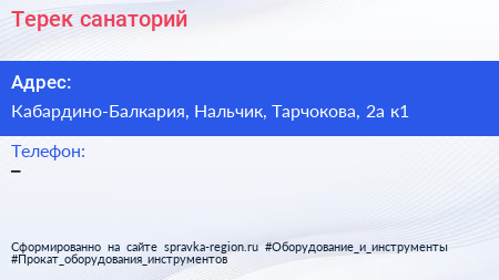 Терек, санаторий по адресу Кабардино-Балкария, Нальчик, Тарчокова, 2а к1 в дальнейшем Организация, размещена в следующих категориях: