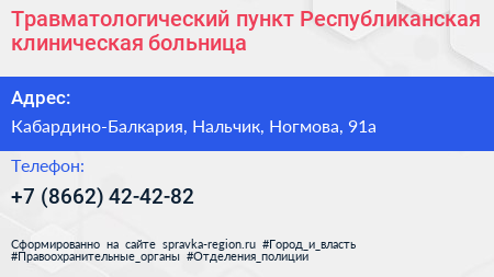 Травматологический пункт, Республиканская клиническая больница по адресу Кабардино-Балкария, Нальчик, Ногмова, 91а в дальнейшем Организация, размещена в следующих категориях: