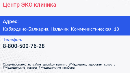 Центр ЭКО, клиника по адресу Кабардино-Балкария, Нальчик, Коммунистическая, 18 в дальнейшем Организация, размещена в следующих категориях:
