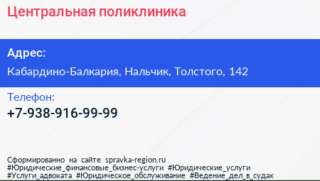 Центральная поликлиника по адресу Кабардино-Балкария, Нальчик, Толстого, 142 в дальнейшем Организация, размещена в следующих категориях: