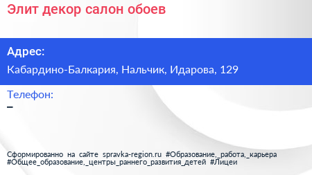 Элит-декор, салон обоев по адресу Кабардино-Балкария, Нальчик, Идарова, 129 в дальнейшем Организация, размещена в следующих категориях: