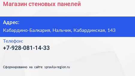 Магазин стеновых панелей по адресу Кабардино-Балкария, Нальчик, Кабардинская, 143 в дальнейшем Организация, размещена в следующих категориях: