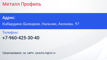 Металл Профиль по адресу Кабардино-Балкария, Нальчик, Ахохова, 97 в дальнейшем Организация, размещена в следующих категориях: