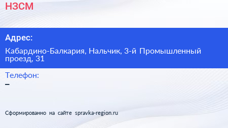 НЗСМ по адресу Кабардино-Балкария, Нальчик, 3-й Промышленный проезд, 31 в дальнейшем Организация, размещена в следующих категориях: