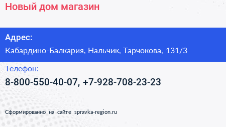 Новый дом, магазин по адресу Кабардино-Балкария, Нальчик, Тарчокова, 131/3 в дальнейшем Организация, размещена в следующих категориях: