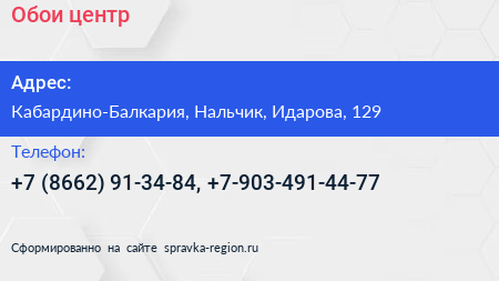 Обои центр по адресу Кабардино-Балкария, Нальчик, Идарова, 129 в дальнейшем Организация, размещена в следующих категориях: