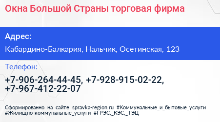 Окна Большой Страны, торговая фирма по адресу Кабардино-Балкария, Нальчик, Осетинская, 123 в дальнейшем Организация, размещена в следующих категориях: