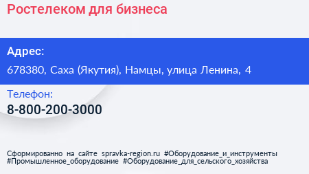 Ростелеком для бизнеса по адресу 678380, Саха (Якутия), Намцы, улица Ленина, 4 в дальнейшем Организация, размещена в следующих категориях:
