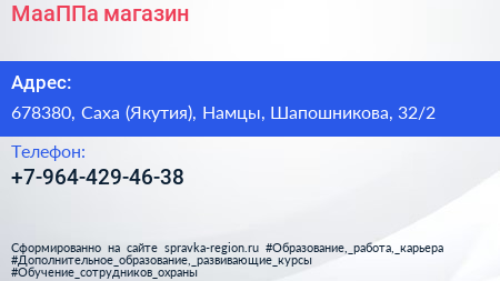 МааППа, магазин по адресу 678380, Саха (Якутия), Намцы, Шапошникова, 32/2 в дальнейшем Организация, размещена в следующих категориях: