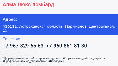 Алма-Люкс, ломбард по адресу 416111, Астраханская область, Нариманов, Центральная, 15 в дальнейшем Организация, размещена в следующих категориях: