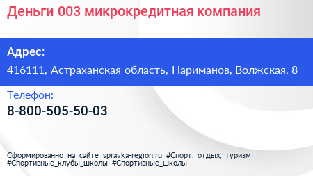Деньги 003, микрокредитная компания по адресу 416111, Астраханская область, Нариманов, Волжская, 8 в дальнейшем Организация, размещена в следующих категориях: