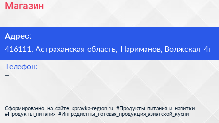 Магазин по адресу 416111, Астраханская область, Нариманов, Волжская, 4г в дальнейшем Организация, размещена в следующих категориях: