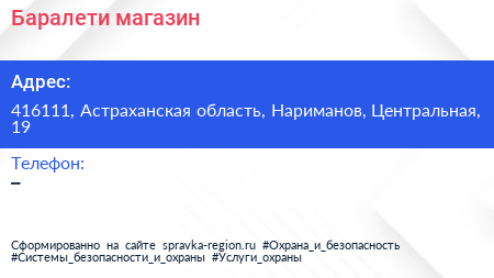 Баралети, магазин по адресу 416111, Астраханская область, Нариманов, Центральная, 19 в дальнейшем Организация, размещена в следующих категориях: