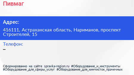 Пивмаг по адресу 416111, Астраханская область, Нариманов, проспект Строителей, 15 в дальнейшем Организация, размещена в следующих категориях:
