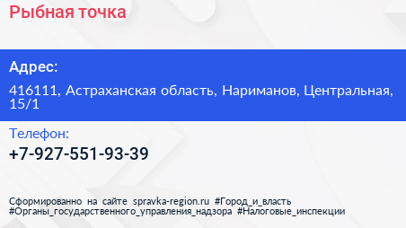 Рыбная точка по адресу 416111, Астраханская область, Нариманов, Центральная, 15/1 в дальнейшем Организация, размещена в следующих категориях: