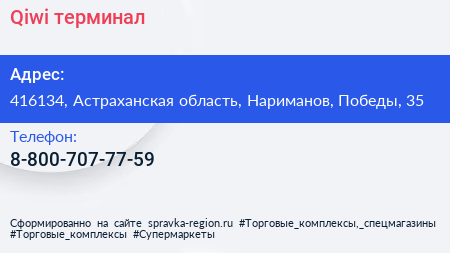 Qiwi, терминал по адресу 416134, Астраханская область, Нариманов, Победы, 35 в дальнейшем Организация, размещена в следующих категориях: